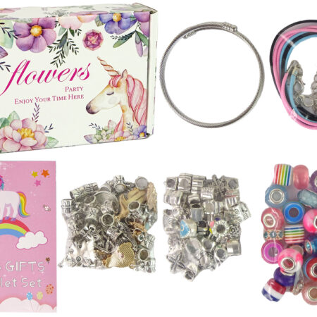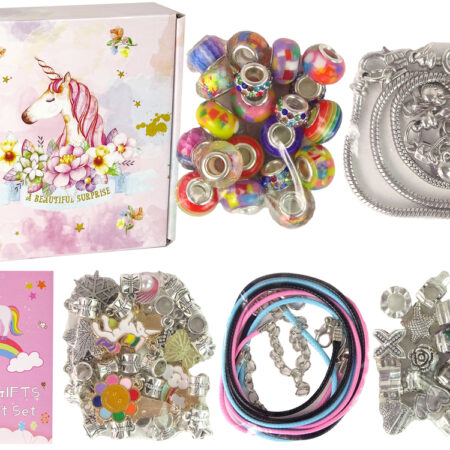 Zestaw Do Robienia Bransoletek Charmsy DIY Jednorożec Każda mała dziewczynka uwielbia biżuterie, makijaż oraz nowości związane z wyglądem. Zestaw składa się z wielu kolorowych zawieszek i różnorodnych wzorów, który pomogą rozbudzić kreatywność i wyobraźnie. Nowa bransoletka? Nic prostszego, z takim zestawem stworzysz olśniewającą biżuterię. Fantastyczna zabawka do spędzania wolnego czasu. Dziewczynka uwielbia błyskotki i zawieszki….