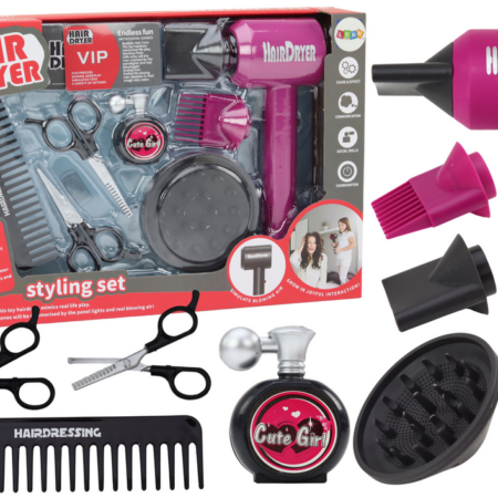 Zestaw Fryzjerski Salon Piękności Fryzjer Suszarka 10 ele. Zestaw fryzjerski dla dzieci to doskonała zabawka dla małych stylistów, którzy chcą poczuć się jak prawdziwi fryzjerzy. Zestaw składa się z 10 elementów, które zapewniają mnóstwo możliwości zabawy i kreatywności. Centralnym elementem zestawu jest suszarka do włosów w kolorze różowym, która dodaje uroku i atrakcyjności zabawce. Suszarka…