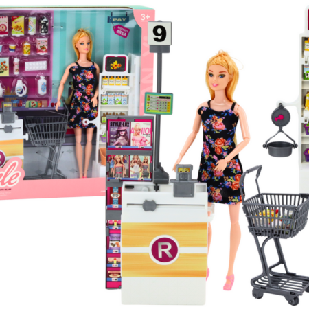 Zestaw Lalka W Supermarkecie Regały Koszyk Sklepowy Produkty Spożywcze Zestaw lalka w supermarkecie to niezwykła zabawka, która przenosi dzieci do fascynującego świata zakupów. Główną bohaterką zestawu jest piękna lalka ubrana w uroczy strój w kwiatki, co nadaje jej uroku i autentyczności. Zestaw zawiera małe produkty spożywcze, regał sklepowy, koszyk na zakupy oraz kasę, co umożliwia…
