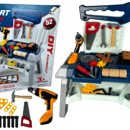 Zestaw Majsterkowicza Warsztat Narzędzia Wiertarka Mnóstwo narzędzi, śrubek zajmuje małych chłopców na długie godziny, chce naśladować swojego tatę. Z pewnością sprawi, że kilkuletnie dziecko poczuje się doroślej, a także nauczy się majsterkowania. Ale to tylko jedna z wielu zalet, na pewno podczas zabawy poprawi precyzję i koordynację manualną. A najważniejszą zaletą jest to, że będzie kreatywnie…
