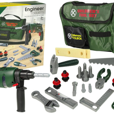Zestaw Majsterkowicza w Torbie Wiertarka Młotek Piła Klucz Francuski Zestaw do majsterkowania składa się z dużej liczby elementów, co z pewnością sprawi ogromną frajdę każdemu kilkulatkowi. Szansa na zabawę polegająca na naśladowaniu domowej złotej rączki, czyli taty lub dziadka, z pewnością sprawi, że maluch poczuje się odpowiedzialnej. Zabawa z prezentowanym zestawem pozytywnie wpłynie na rozwój dziecka — jego spryt,…