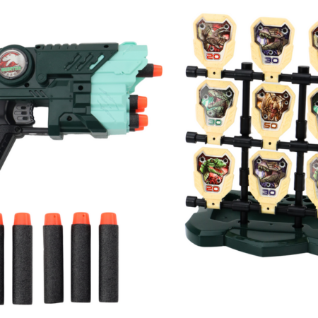 Zestaw Pistolet Z Tarczą Strzałki Piankowe Dinozaury Zielony Zestaw do strzelania z motywem dinozaurów to doskonała propozycja dla młodych miłośników przygód i prehistorycznych stworzeń. W skład zestawu wchodzi mały, zręczny pistolet na strzałki piankowe, który dzięki swojemu ergonomicznemu kształtowi doskonale leży w dłoni dziecka. Pistolet wyposażony jest w magazynek, co sprawia, że strzałki są zawsze…
