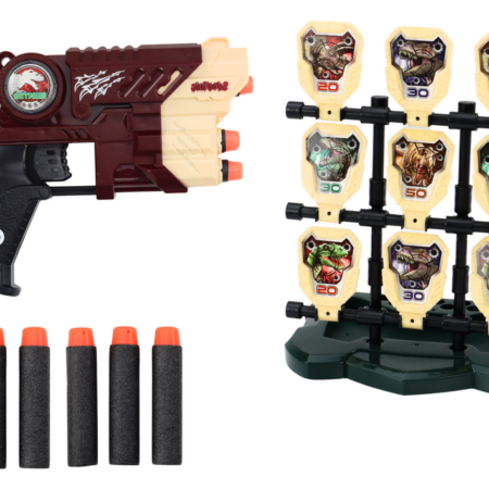 Zestaw Pistolet Z Tarczą Strzałki Piankowe Dinozaury Brązowy Zestaw do strzelania z motywem dinozaurów to doskonała propozycja dla młodych miłośników przygód i prehistorycznych stworzeń. W skład zestawu wchodzi mały, zręczny pistolet na strzałki piankowe, który dzięki swojemu ergonomicznemu kształtowi doskonale leży w dłoni dziecka. Pistolet wyposażony jest w magazynek, co sprawia, że strzałki są zawsze…