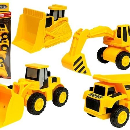 Zestaw Pojazdów Budowy 4 sztuki Napęd Frykcyjny Zestaw maszyn budowlanych to świetny pomysł na zabawkę dla małego budowniczego. Z pewnością przyniesie mu dużo frajdy i zapozna ze światem maszyn. W zestawie mały kierownik budowy znajdzie super żółtą koparkę. Maszyna posiada ruchomą łyżkę, którą maluch może nabierać piasek. Koparka jest bardzo realistyczna, ponieważ ma schodki do kabiny…