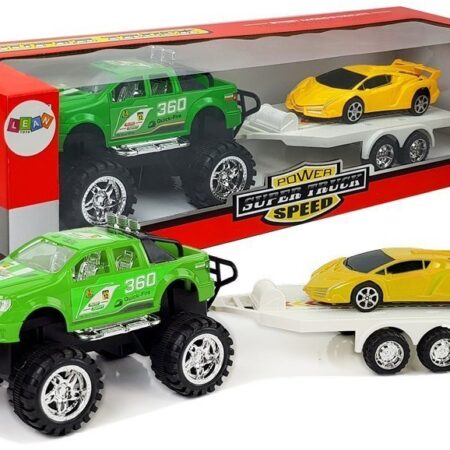 Zestaw Pojazdów Auto Sportowe Żółte Terenowe Zielone z Napędem Frykcyjnym Auto terenowe z lawetą ,na której przewozi piękne, żółte auto sportowe z pewnością zapewni niezapomnianą zabawę z rówieśnikami i pobudzi Twoje dziecko do kreatywniej zabawy. Większe autko posiada napęd frykcyjny, wystarczy pociągnąć do tyłu i puścić, patrzeć jak mknie w przód. Lawetę można odłączyć, a wszystkimi…