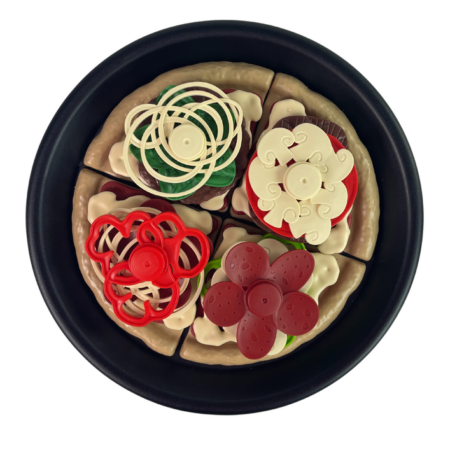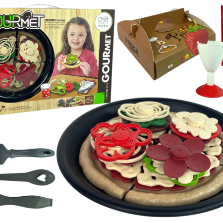 Zestaw Pizza Dodatki Kuchnia Jedzenie Do Zabawy Dzieci uwielbiają pizzę, a często największą dla nich tajemnicą jest to, w jaki sposób jest tak równo pokrojona. Za pomocą zabawkowego zestawu z pizzą same będą w stanie serwować perfekcyjnie pokrojoną pizzę z lodami na deser! Czas na przygodę z gotowaniem i otwarcie własnej pizzerii. Zabawka pozytywnie wpłynie na zdolność…