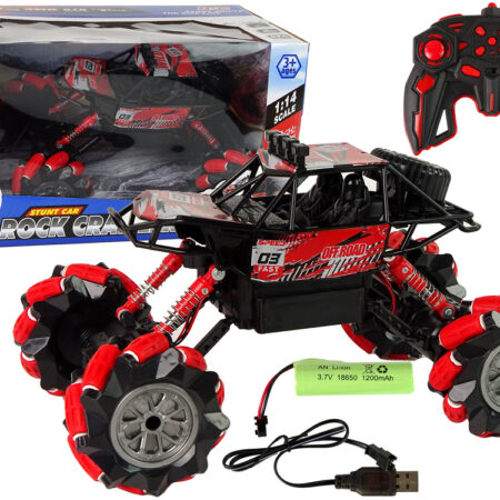 Auto Zdalnie Sterowane Terenowe R/C 1:14 Czerwone Czerwone, zdalnie sterowane autko na pilota to doskonały wybór dla miłośników motoryzacji. To auto bez problemu pokonuje przeszkody dzięki zastosowanym amortyzatorom i dużym kołom o średnicy 8 cm. Realistyczny wygląd auta zachwyci każde dziecko. Sterowanie zdalnie sterowanego auta rozwija koncentrację, trenuje palce i wzmacnia skupienie. Czarny pilot z czerwonymi…