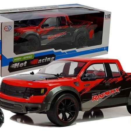 Sportowe auto zdalnie sterowane Czerwone Pick Up Zdalnie sterowany samochód w kolorowej, sportowej grafice. Przedstawiony model stworzony jest w skali 1:10, dzięki czemu wygląda niesamowicie realnie. Auto stylizowane na pick up’a. Zdalnie sterowany pojazd wyścigowy R/C wpłynie na prawidłowe rozwijanie w dziecku takich umiejętności, jak prowadzenie zabawkowego samochodu, a także wzmocnienie koncentracji i rozwinięcie zdolności manualnych, zwinności i sprytu. Opływowa…