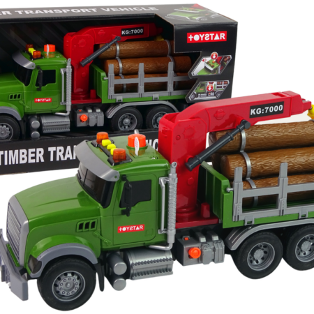 Ciężarówka Samochód Dźwig Transport Bale Drewna Dźwięk Ciężarówki często transportują potrzebne materiały, artykuły lub jak w tym przypadku bale drewna. Wzbudzają ich zainteresowanie, Twoje dziecko odkryje ciekawą zabawę na długie godziny. Zabawka, która będzie świetnym prezentem, zapewni mnóstwo zabawy. Przyczepa znajdujący się w tylnej części posiada ruchomy dźwig. Osadzona na czterech kółeczkach, bez problemu umożliwia przewożenie bali…