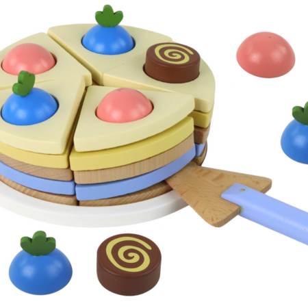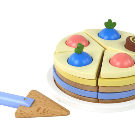 Drewniane Ciasto Tort Kawałki 8 ele. Całe ciasto jest pokrojone na kawałki, z każdym kawałkiem wyposażonym w rzepy. To innowacyjne rozwiązanie umożliwia łączenie kawałków w dowolny sposób, co daje dzieciom swobodę w tworzeniu unikalnych kombinacji. Tort składa się z różnokolorowych kawałków, co sprawia, że zestaw jest atrakcyjny wizualnie. Dzieci mogą ćwiczyć rozpoznawanie kolorów i rozwijać…
