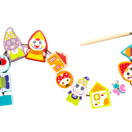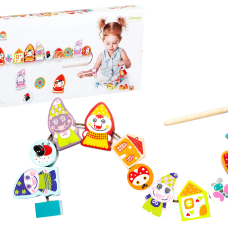 Drewniane Nawlekane Figurki Krasnoludki Skrzaty na sznurku Klocki 13654 Zestaw składa się z 12 kolorowych klocków w kształcie krasnoludków, domków oraz sznurka z drewnianą końcówką ułatwiającą przeciąganie. Zabawka rozwija koncentrację, koordynację i umiejętności motoryczne. Klocki należy nawlec za pomocą drewnianej igły na sznurek i przeciągnąć wg kolejności podanych na kartach lub wg własnej wyobraźni. Do produkcji…
