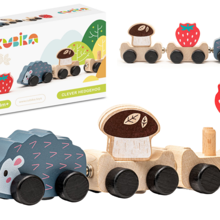 Drewniana Zabawka Mądry Jeżyk Wagoniki Truskawka Grzybek 15467 Ten wspaniały Jeż to niesamowita drewniana zabawka. W skład zestawu wchodzi jeż, dwie przyczepy, truskawka i grzybek. Elementy drewnianej zabawki możemy wprawiać w ruch. Zabawka umożliwia dziecku przewóz truskawki i grzybka na przyczepie. Do produkcji zabawek producent wybiera najlepsze rodzaje drewna i wykorzystuje nietoksyczne farby na bazie wody. Wszystkie zabawki CUBIKA są…