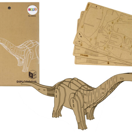 Drewniane Puzzle Przestrzenne 3D Brontozaur Składanka Edukacyjna 38 Elementy Brontozaur z drewnianych puzzli przestrzennych 3D! To pasjonujące i edukacyjne doświadczenie, które połączą Twoje dziecko z pracą twórczą, rozwijaniem wyobraźni przestrzennej i zdolnościami manualnymi. Nasz drewniany model powstaje poprzez systematyczne wyciskanie elementów z naciętych arkuszy sklejki drewnianej i dopasowanie ich ze sobą zgodnie z załączoną instrukcją…