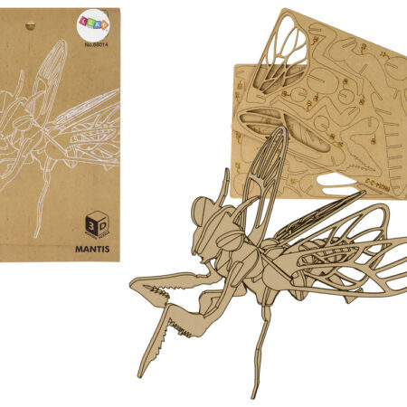 Drewniane Puzzle Przestrzenne 3D Modliszka Składanka Edukacyjna 27 Elementy Modliszka z drewnianych puzzli przestrzennych 3D! To pasjonujące i edukacyjne doświadczenie, które połączą Twoje dziecko z pracą twórczą, rozwijaniem wyobraźni przestrzennej i zdolnościami manualnymi. Nasz drewniany model powstaje poprzez systematyczne wyciskanie elementów z naciętych arkuszy sklejki drewnianej i dopasowanie ich ze sobą zgodnie z załączoną instrukcją…