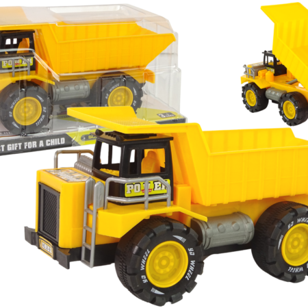 Duża Wywrotka Pojazd Kiper Żółta Przedstawiamy dużą, plastikową wywrotkę, przydatną na dziecięcej budowie. Wspólna zabawa z tym przedmiotem doskonale wpłynie na Twoją pociechę, rozbudzi ciekawość i zachęci do aktywnej zabawy. Po zabawach wywrotką można zauważyć wzmocnienie percepcji dotykowej i wzrokowej dziecka. Ciężarówka charakteryzuje się wytrzymałością, ponieważ została wykonana z wysokiej jakości plastiku. Szerokie, duże koła ułatwią podróżowanie…