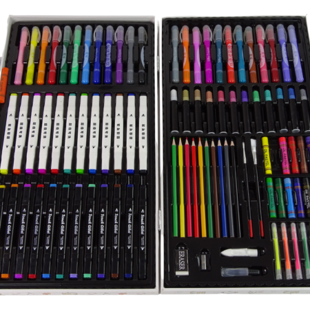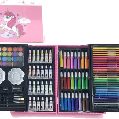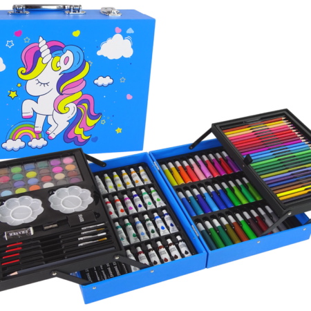 ZESTAW ARTYSTYCZNY DLA DZIECI 145 ELEMENTÓW W niebieskiej walizce z jednorożcem Kreatywna zabawa dla każdego – kompletny zestaw kredek, farb, pisaków! Nasz zestaw w walizce z uroczym jednorożcem posiada wszystkie niezbędne przyrządy artystyczne w różnych kolorach. Zestaw jest duży i posiada aż 145 elementów tak by dziecku nie zabrakło niczego podczas tworzenia swoich dzieł. Wszystko…