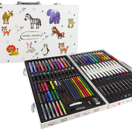 Ogromny Zestaw Artystyczny Do Malowania 94 Elementy ! W walizce z nadrukami wesołych zwierzątek Ogromny zestaw do malowania i rysowania to wspaniała rzecz na początek artystycznej przygody dla dzieci. Komplet jest funkcjonalny i składa się łącznie z 94 przydatnych części oraz praktycznej walizki. Duża ilość elementów umożliwia praktyczne wykorzystanie i pozwoli realizować rozmaite, kreatywne pomysły. 94 elementy – przy…