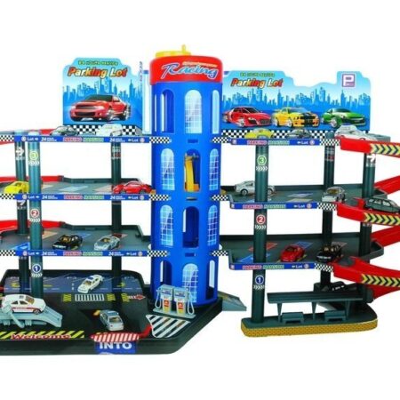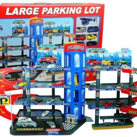 Ogromny, podwójny garaż poziomowy + zestaw 6 resoraków i helikopterPodwójny parking z windą posiada dwa kręte zjazdy, a także trzy, bardzo duże piętra. Jesteśmy pewni, że taki zestaw przyniesie mnóstwo frajdy każdemu chłopcu, który jest fanem małych samochodzików i resoraków. Poziomowe garaże z windą dostosowane są do rozmiaru autek i helikoptera, dołączonych do zestawu — a…