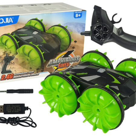 Amfibia Dwustronna Zdalnie Sterowana Zielona 2.4G Wyprawy terenowe, jazda po nierównym terenie interesuje Twoje dziecko. Spraw mu pojazd, który ucieszy najbardziej wymagającego wielbiciela terenowych aut. Dzięki dużym, pompowanym kołom oraz wyjątkowemu zawieszeniu potrafi odnaleźć się w każdych warunkach, gwarantując niezapomnianą zabawę. Koła zwiększają przyczepność pojazdu do nawierzchni. Zestaw zawiera wygodny kontroler, dzięki czemu można czerpać maksymalna przyjemność z jazdy. Niesamowite parametry i sportowy…