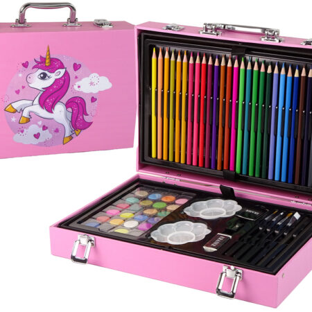 ZESTAW ARTYSTYCZNY DLA DZIECI 145 ELEMENTÓW W różowej walizce z jednorożcem Rozbudź wyobraźnie oraz kreatywne zdolności swojego dziecka z zestawem artystycznym. W naszym zestawie artystycznym każdy znajdzie coś dla siebie – pisaki do kolorowania, kredki do rysowania oraz farbki do malowania. Wszystko to w nasyconych barwach, które doskonale prezentują się na papierze. Całość zamknięta w…