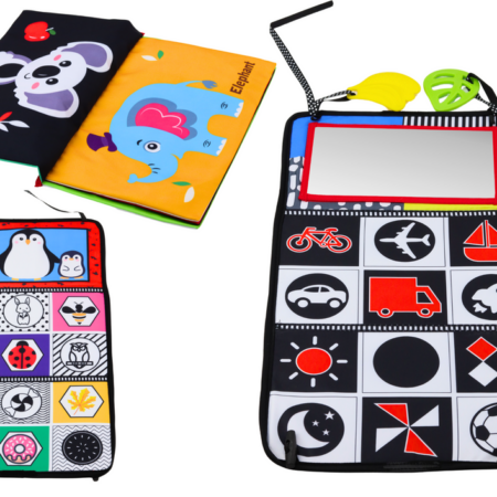 Dwustronna Mata Składana Z Lustrem Gryzaki Szeleszcząca Książeczka Dwustronna mata dziecięca z lustrem i kontrastowymi wzorami to prawdziwy skarb dla rozwijającego się malucha. Wyjątkowość tej zabawki tkwi w wielu fascynujących elementach, które nie tylko zapewniają rozrywkę, ale także wspierają wszechstronny rozwój dziecka. Mata posiada kolorowe obrazki zwierzątek, pojazdów i wzorów, które nie tylko przyciągają wzrok,…