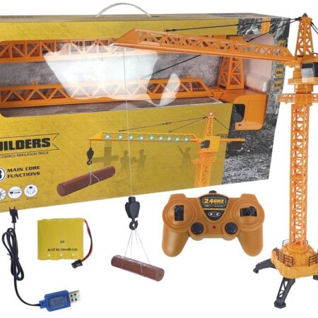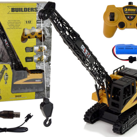 Dźwig Żuraw 1:12 Zdalnie Sterowany 2,4 GHz Budowa Światła Ogromne maszyny budowlane przyciągają uwagę małych chłopców, mniejszy odpowiednik mamy właśnie dla Ciebie. Dowodzenie tak wielkim obiektem, jak dźwig budowlany musi być marzeniem niejednego chłopca mijającego budowę wieżowców. Idealne odwzorowanie i elastyczne działanie pozwala dzieciom na dużą zabawę. Jego praca pozwala łatwo nauczyć się zasad na budowie….
