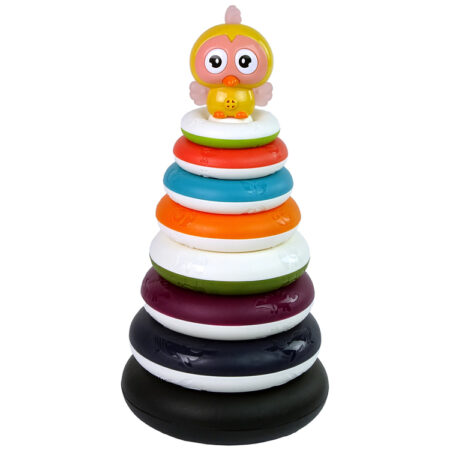 Edukacyjna Piramidka z Obręczami Kółka Kaczuszka Piramidka z kółek to klasyczna zabawka w bajecznie kolorowej wersji. Rozwija sprawność ruchową dziecka oraz koncentracje, ponieważ musi się skupić na stworzeniu piramidki. Niemowlę dzięki zabawce uczy się rozpoznawać wielkości przedmiotów oraz kolor. Układanie stosu z kółek pomaga w rozwijaniu koordynacji ręka-oko, a nauka dobierania kółek i układania ich od największego…