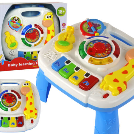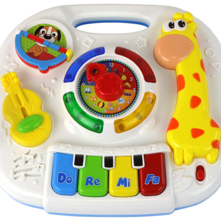 Edukacyjny Interaktywny Stolik Tablica 2w1 Dla Maluchów Żyrafa Pragniemy zaprezentować fascynujący stolik edukacyjny 2w1, stanowiący doskonałe narzędzie do wszechstronnego rozwoju malucha. Środkowym punktem tablicy jest ruchomy zegar, który nie tylko uczy dziecko rozpoznawania czasu, ale również rozwija zdolności motoryczne poprzez interakcję z ruchomą wskazówką. To nie tylko zabawka, ale także narzędzie wprowadzające dziecko w świat…