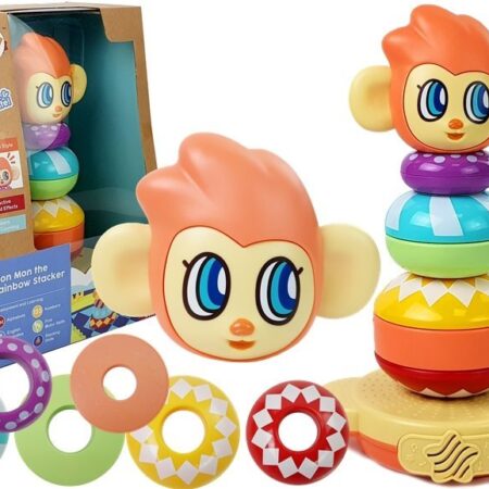 Edukacyjna Piramidka Małpka z Dźwiękami, Nauka Liczb Urocza małpka przyciągnie uwagę twojego dziecka ! Maluch nie będzie mógł się oprzeć zabawie. Interaktywna grające zabawka nauczy dziecko porządkowania przedmiotów zgodnie z ich wielkością, kształtem. Kolorowe pierścienie i wzory będą stymulować zmysł wzroku i dotyku maluszka, przynosząc mu równocześnie ogromną radość. Dodatkowe elementy dźwiękowe rozwiną jego zmysł słuchu i zachęcą do ciągłej zabawy…