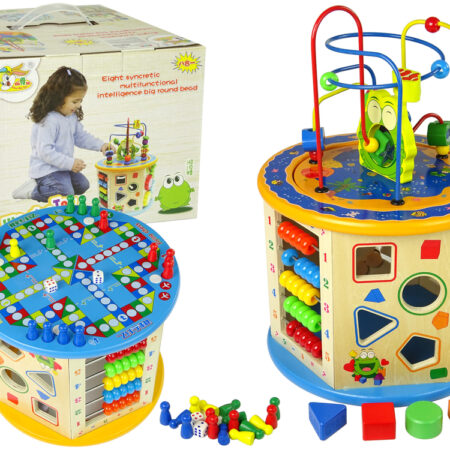 Edukacyjna Kostka Drewniana Sorter Labirynt Liczydło Gra Chińczyk Pionki Wielofunkcyjna drewniana kostka edukacyjna rozwija zdolności manualne oraz wyobraźnię maluszka na wiele sposobów. Pomaga poznawać świat dziecka, dzięki różnorodnym zabawą. Zabawka posiada osiem płaszczyzn: sześć bocznych, górną i dolną. Każda z nich jest inna i zaskakuje swoimi propozycjami ciekawej zabawy. Uważamy, że taki produkt na pewno zaabsorbuje nawet najbardziej wymagające…