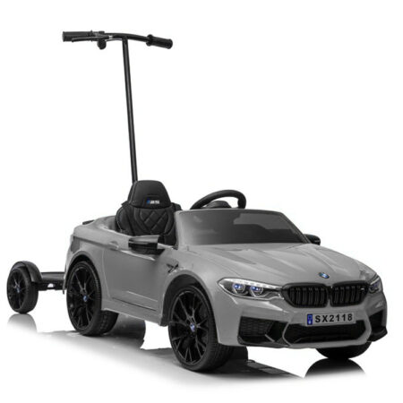 Auto Na Akumulator BMW M5 Z Platformą Dla Rodzica Srebrne Lakierowane Wymiary opakowania: 127 cm x 64 cm x 37 cm Waga opakowania: 31 kg