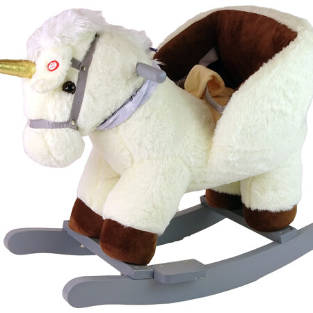 Konik Na Biegunach Bujak Biały Jednorożec Witaj w świecie magii i zabawy z naszym małym konikiem na biegunach, który przywoła uśmiech na twarzach dzieci! Ten uroczy jednorożec w kremowym kolorze jest idealnym towarzyszem dziecięcych przygód. Zasilany bateriami (3 x R6 AA – brak w zestawie), zaczyna grać radosną melodię, poprzez przyciśniecie ucha, dodając magii do…