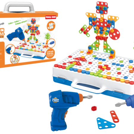 Kreatywna Mozaika Układanka 2D/3D Wkrętarka na baterie + Walizka 248 Elementów Każdy mały konstruktor ucieszy się z zabawki. Pobudzi jego kreatywność i zdolności manualne, a do tego sprawi dużo frajdy. Zabawka poprzez szerokie możliwości tworzenia konstrukcji pochłonie malucha na wiele godzin, a zabawa szybko się nie znudzi ! Dodatkowo uczy cierpliwości i precyzji….