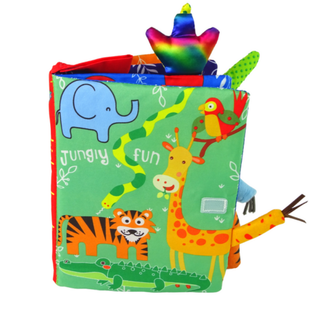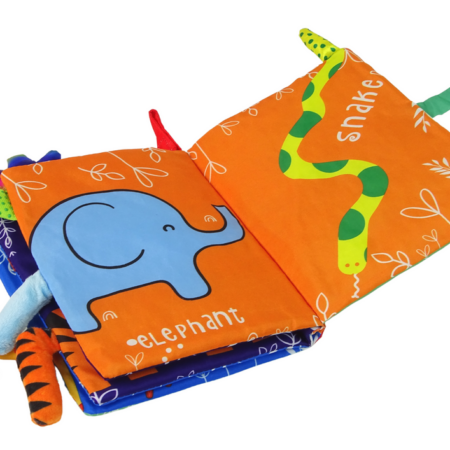 Książeczka Miękka Zwierzęta Dżungli Kolorowa To zachwycająca książeczka z materiału dla dzieci, stworzona w celu wprowadzenia najmłodszych czytelników w fascynujący świat różnorodnych zwierzątek. Z kolorowymi ilustracjami i elementami, jest ona idealnym towarzyszem, który rozbudza ciekawość i wspiera wczesną naukę. Jej wymiary wynoszą: 18 cm x 22,5 cm x 2 cm, co sprawia, że…