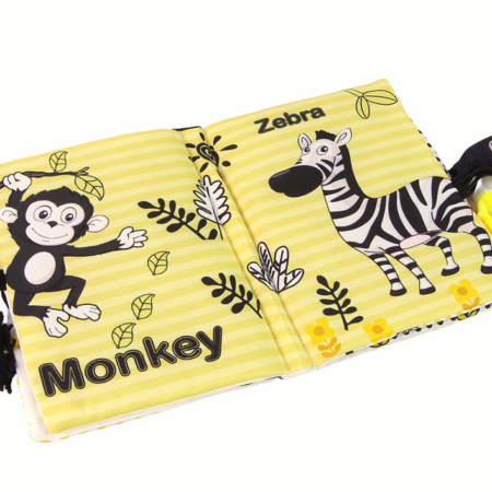Książeczka Miękka Zwierzęta Czarna Żółta To zachwycająca książeczka z materiału dla dzieci, stworzona w celu wprowadzenia najmłodszych czytelników w fascynujący świat różnorodnych zwierzątek. Z kolorowymi ilustracjami i elementami, jest ona idealnym towarzyszem, który rozbudza ciekawość i wspiera wczesną naukę. Jej wymiary wynoszą: 20 cm x 18 cm x 2 cm, co sprawia, że…