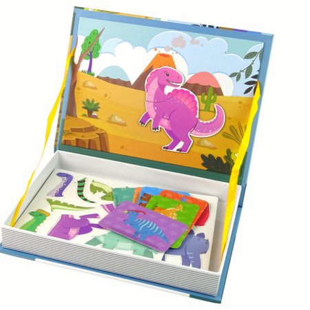 Książka Magnetyczna Dinozaury 36 Elementów Ta interaktywna i edukacyjna książka przeniesie Cię w odległy świat prehistorycznych olbrzymów. Jej wnętrze skrywa tajemnicę, która pozwoli Ci odkrywać i eksplorować wspaniałe gatunki dinozaurów, a zarazem rozwijać kreatywność i zdolności manualne. Jej głównym elementem jest duża, kolorowa plansza z motywem natury, która otwiera przed Tobą nieskończone możliwości…