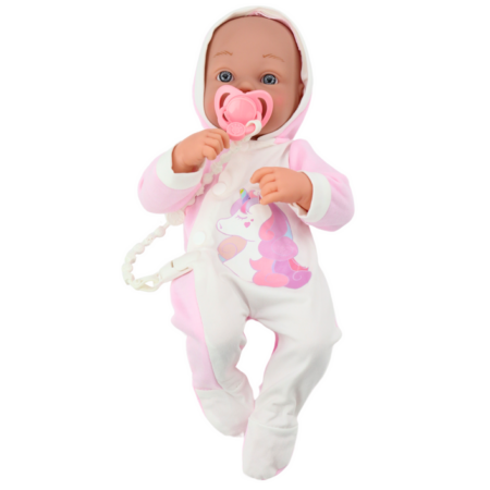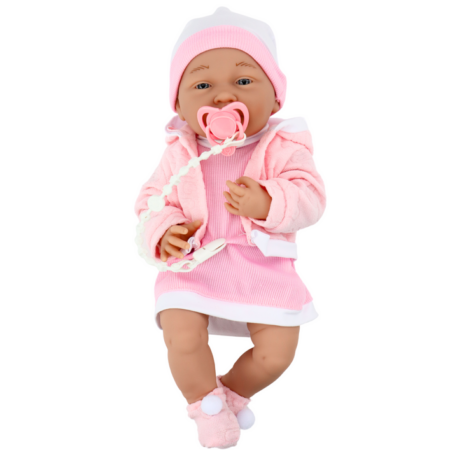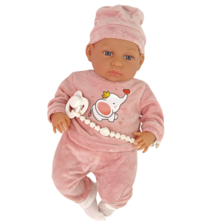 Lalka Bobas 46 cm Różowa Smoczek Becik Słonik Urocza lalka bobas zachwyci malucha. Zabawa będzie niezwykłym doświadczeniem, nauczy odpowiedzialności i empatii. Wymiar edukacyjny lalki zaprocentuje w przyszłości i pomoże wczuć się w ważną rolę, jaką jest opieka nad drugą osobą. Twoje dziecko uwielbia naśladować swoje kochające, troskliwe i opiekuńcze mamusie. Lalka wielkością i wykonaniem przypomina prawdziwe…