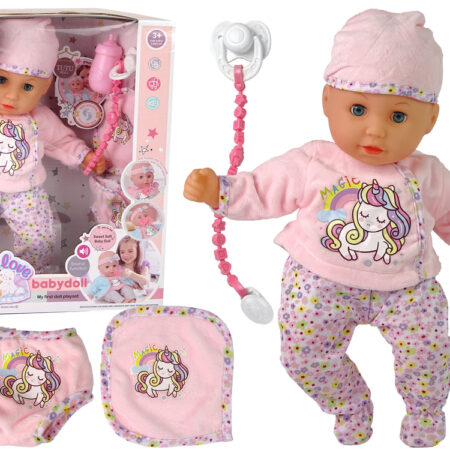 Lalka Bobas Dźwięk Smoczek Śliniaczek Różowa Piżama Jednorożec Urocza lalka bobas zachwyci malucha. Zabawa będzie niezwykłym doświadczeniem, nauczy odpowiedzialności i empatii. Wymiar edukacyjny lalki zaprocentuje w przyszłości i pomoże wczuć się w ważną rolę, jaką jest opieka nad drugą osobą. Twoje dziecko uwielbia naśladować swoje kochające, troskliwe i opiekuńcze mamusie. Lalka ubrana jest w piękną…