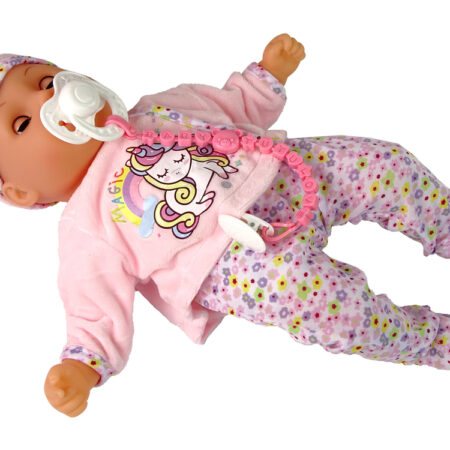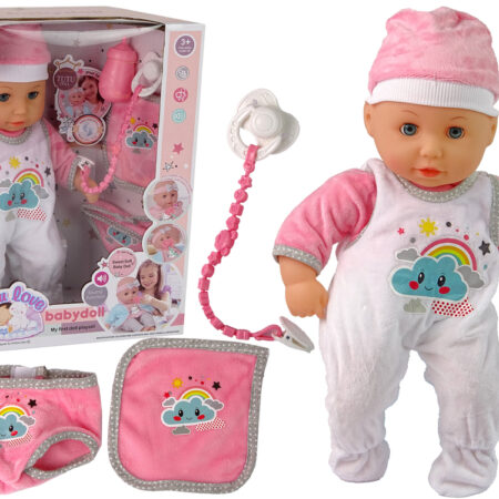 Lalka Bobas Dźwięk Smoczek Śliniaczek Różowa Biała Piżama Chmurka Urocza lalka bobas zachwyci malucha. Zabawa będzie niezwykłym doświadczeniem, nauczy odpowiedzialności i empatii. Wymiar edukacyjny lalki zaprocentuje w przyszłości i pomoże wczuć się w ważną rolę, jaką jest opieka nad drugą osobą. Twoje dziecko uwielbia naśladować swoje kochające, troskliwe i opiekuńcze mamusie. Lalka ubrana jest w…
