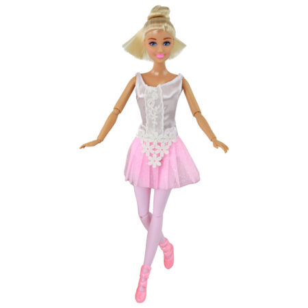 Lalka Baletnica Różowa Laleczka Balerina Sukienka 33cm Elegancka i wyjątkowa lalka baletnica, która stanie się ulubioną towarzyszką zabaw każdej dziewczynki marzącej o tańcu i balecie. Lalka ma imponującą wysokość 33 cm, co czyni ją doskonałą do zabawy i prezentowania w kolekcji. Lalka ma długie, blond włosy, które są stylowo spięte w koka, jak przystało na prawdziwą baletnicę….