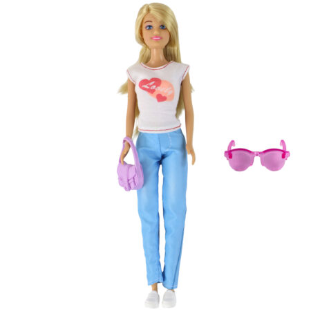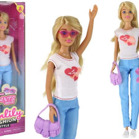 Lalka Dla Dzieci Anlily Długie Blond Włosy Torebka Okulary Biała Bluzka W naszym sklepie internetowym prezentujemy niezwykłą lalkę Anlily, która zachwyci każde dziecko. Ta lalka ma wymiary 30 cm x 7 cm x 5 cm i jest prawdziwą modną ikoną. Laleczka jest ubrana w białą bluzkę w serca, niebieskie spodnie i białe sportowe buty, co…