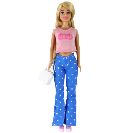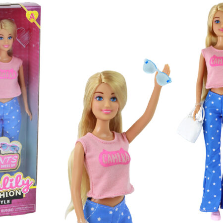 Lalka Dla Dzieci Anlily Długie Blond Włosy Torebka Okulary Różowa Bluzka W naszym sklepie internetowym prezentujemy niezwykłą lalkę Anlily, która zachwyci każde dziecko. Ta lalka ma wymiary 30 cm x 7 cm x 5 cm i jest prawdziwą modną ikoną. Laleczka jest ubrana w różową bluzkę, niebieskie spodnie – dzwony w gwiazdki i różowe sportowe…