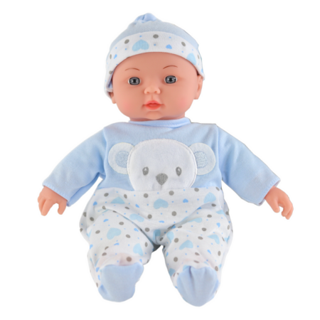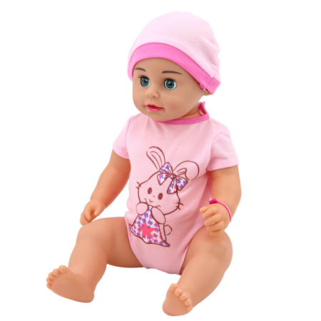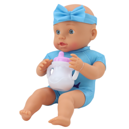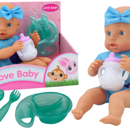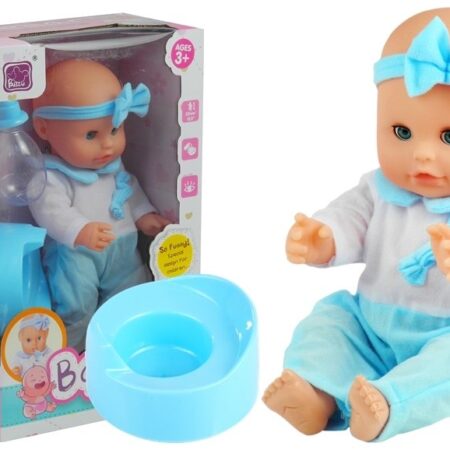 Lalka-bobas z butelką i nocniczkiem w niebieskim ubranku Prezentowana lalka jak każdy maleńki bobas potrzebuje mnóstwa miłości, uczuć i tulenia — wszystko po to, by mogła być szczęśliwa i zadowolona. Wiele dziewczynek uwielbia naśladować swoje kochające, troskliwe i opiekuńcze mamusie — nasz bobas pomoże dziewczynce wczuć się w tę ważną rolę. Zabawa ta nie służy…