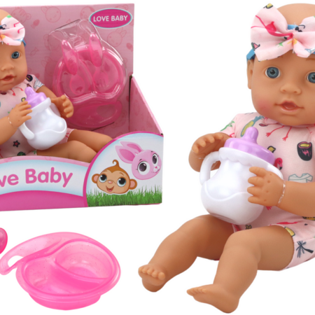 Lalka Bobas Ubranko z Flamingami Opaska Akcesoria Do Karmienia Urocza lalka bobas! W jasno-różowym ubranku z flamingami i palmami oraz piękną opaską z kokardką , ta lalka emanuje czystym urokiem i słodyczą. Zestaw zawiera nie tylko tę uroczą lalkę, ale także praktyczne akcesoria, takie jak miseczka z łyżeczką i widelcem oraz butelkę. Dla każdej małej…