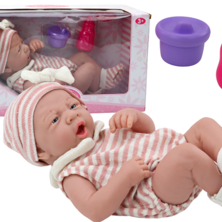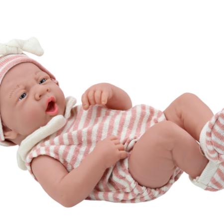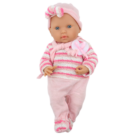 Lalka Bobas Sweterek w Paski Czapeczka Szalik Akcesoria Różowy Lalka bobas w różowym ubranku to doskonała towarzyszka dla każdej małej opiekunki. Jej uroczy sweterek w biało-różowe paski, czapeczka i szaliczek nadają jej uroku. Posiada ruchome rączki i nóżki, które można łatwo przestawiać i ustawić w różnych pozycjach, co dodaje realizmu i możliwości interakcji podczas zabawy….