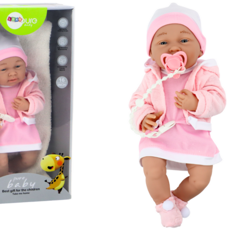 Lalka Bobas Ze Smoczkiem Sukienka Czapeczka Różowa Kocyk Akcesoria 35 cm Lalka bobas to doskonała towarzyszka dla każdej małej opiekunki. Ubrana jest w różową sukienkę i sweterek oraz biało-różową czapeczkę. Posiada ruchome rączki i nóżki, które można łatwo przestawiać i ustawić w różnych pozycjach, co dodaje realizmu i możliwości interakcji podczas zabawy. Ta urocza lalka została stworzona z bezpiecznych…