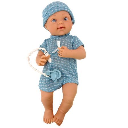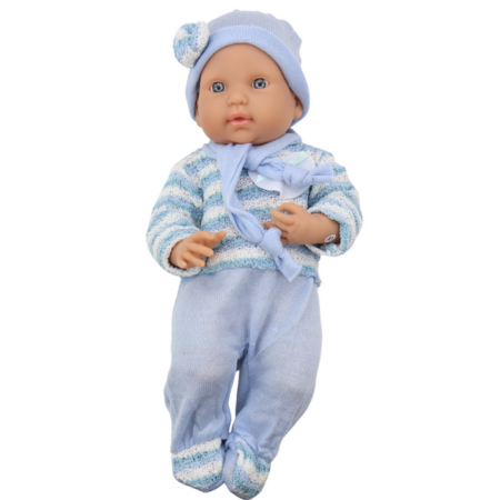 Lalka Bobas Sweterek w Paski Czapeczka Szalik Niebieski Lalka bobas w niebieskim ubranku to doskonała towarzyszka dla każdej małej opiekunki. Jej uroczy sweterek w biało-niebieskie paski, czapeczka i szaliczek nadają jej uroku. Posiada ruchome rączki i nóżki, które można łatwo przestawiać i ustawić w różnych pozycjach, co dodaje realizmu i możliwości interakcji podczas zabawy. Ta…