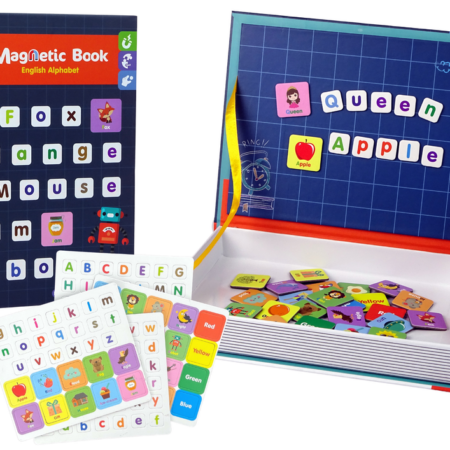 Magnetyczna Układanka Książka Angielski Alfabet Obrazki Zabawka rozwinie swoje funkcje poznawcze oraz nauczą się kreatywnego myślenia, koncentracji i samodzielności. Książka z magnetycznymi literkami i obrazkami będzie pierwszym krokiem do nauki języka angielskiego. Pomoże w późniejsze nauce w szkole. W zestawie znajdują się magnesy z literami, na wewnętrznej stronie książki znajduje się mała tablica, można ułożyć na…