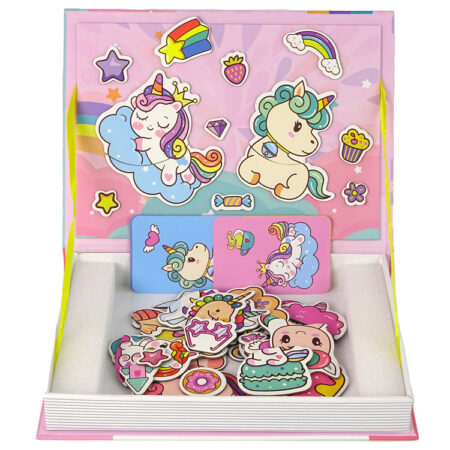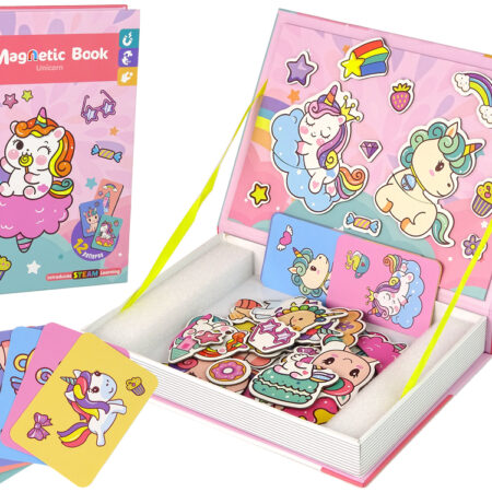 Magnetyczna Układanka Książka Jednorożce Puzzle Karty Zabawka rozwinie swoje funkcje poznawcze oraz nauczą się kreatywnego myślenia, koncentracji i samodzielności. W zestawie znajdują się karty przedstawiające słodkie jednorożce, zadaniem malucha jest ułożenie magnetycznych elementów według wzoru, aby całkowicie odwzorować dany obrazek. Puzzle będą służyć dziecku przez długi czas, dzięki możliwości tworzenia najróżniejszych, kreatywnych obrazków. Pisak pozwoli…