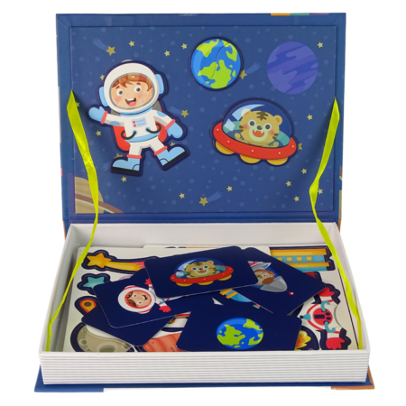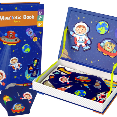 Magnetyczna Układanka Książka Kosmos Gwiazdy Zabawka rozwinie swoje funkcje poznawcze oraz nauczą się kreatywnego myślenia, koncentracji i samodzielności. W zestawie znajdują się karty przedstawiające poszczególne postacie i pojazdy kosmiczne, zadaniem malucha jest ułożenie magnetycznych elementów według wzoru, aby całkowicie odwzorować dany obrazek. Puzzle będą służyć dziecku przez długi czas, dzięki możliwości tworzenia najróżniejszych, kreatywnych obrazków….